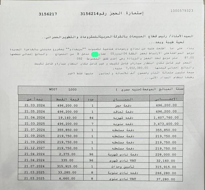 المطلوب المدفوع: 3,114,000 جنيهالأوفر: 250,000 جنيه