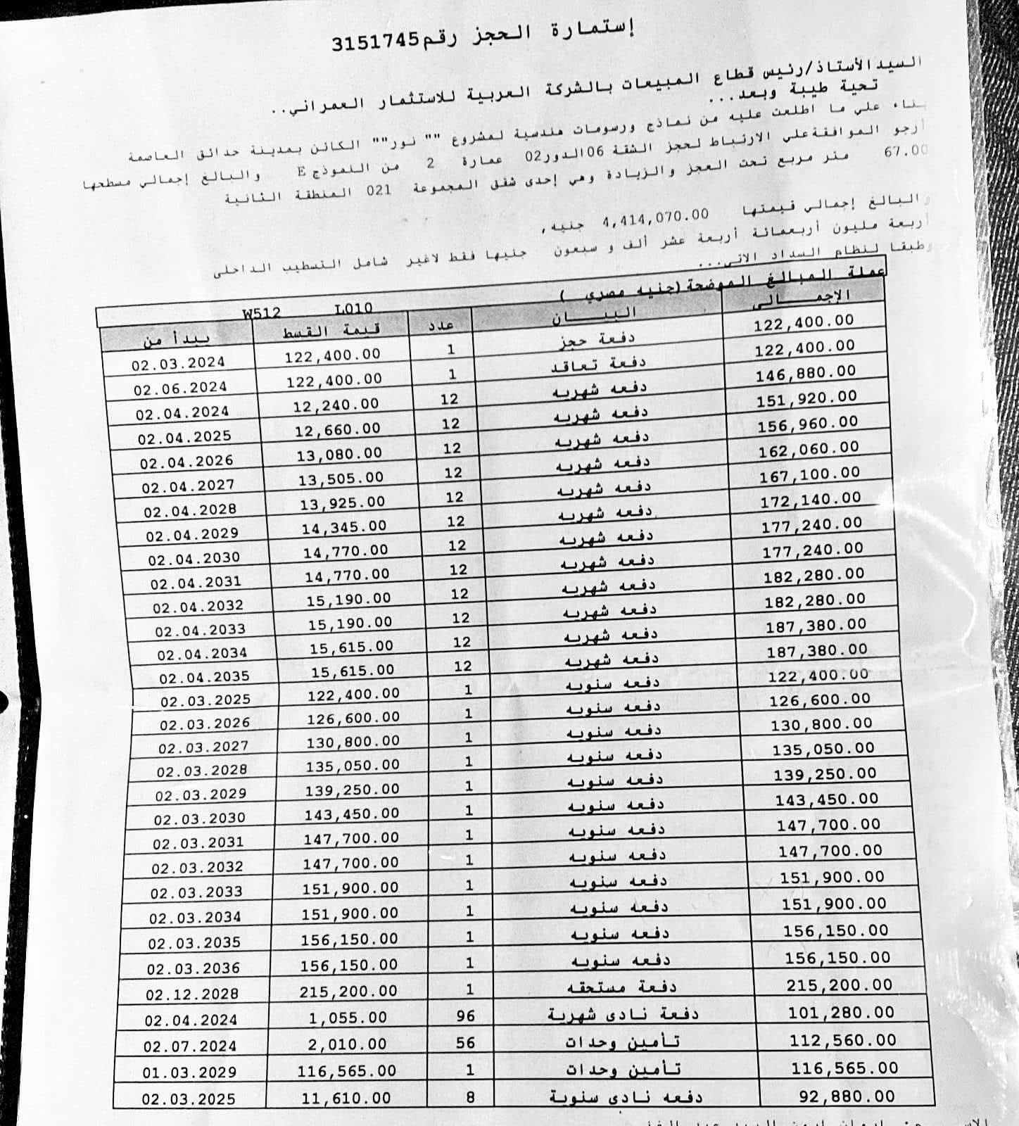 قسط شهري 12 الف فقط و سنوي 130 الف فقط حجز شهر 3/2024و خطوات من الخدمات كود الوحده N 13002 للتواصل 01285813888