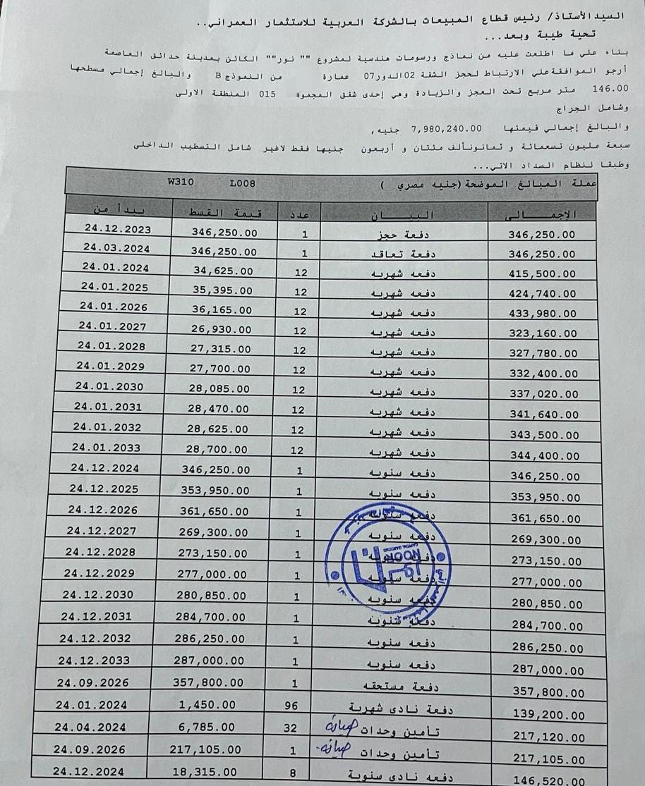للبيع كاش شقق نموذج 08 مساحه200م دور متكرر B12 وحدة 200 متر B12 3غرفة, 3 حمام, 200 m2 B12 12.000.000 جنيه