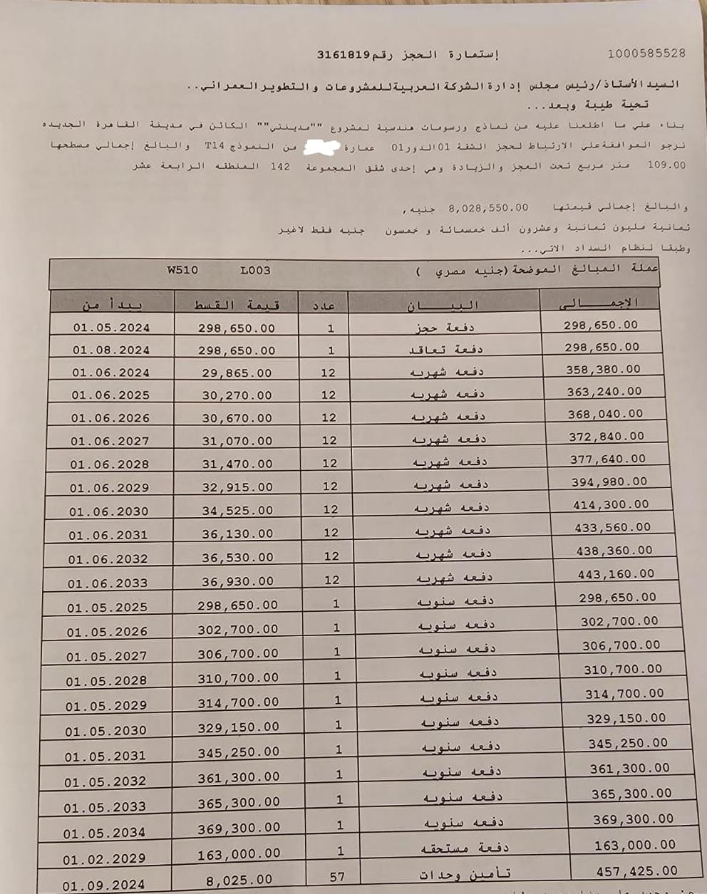 إستمارة شقق نموذج T14 متكرر B14 عرض قوي للبيع في B14 مدينتي 3غرفة, 2 حمام, 109 متر m2 B14 8028550 جنيه